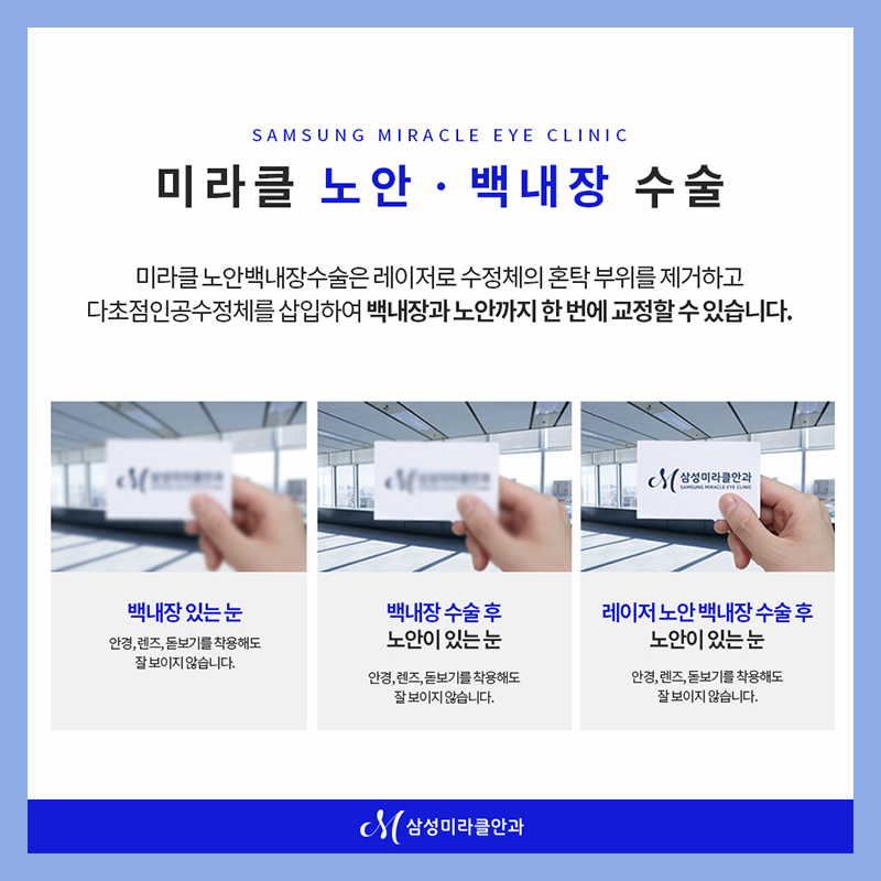 또한 노안 백내장 수술의 가격보다 더 중요한 점은 풍부한 임상 경험을 가진 안과 전문의가 직접 집도하는 것이었습니다. 수술 후 수술경과와 회복시력검진, 정밀검사 반복, 매년 눈상태 케어 등 사후관리까지 하는 곳을 택하는 것이 현명했습니다.