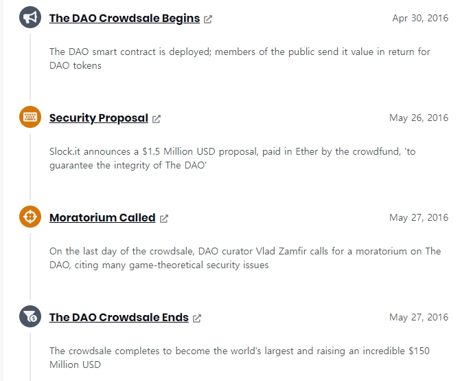 2016년 6월 Ethereum 커뮤니티 ‘THE DOUR’가 해커의 공격을 받았습니다.Ethereum으로 환전을 가능하게 하는 스플릿 기능의 취약점을 이용한 해킹 공격으로, 더 오 코드의 취약점을 이용하여 해커가 새롭게 분리하여 작성한 새로운 더 오 프로젝트를 통해 약 520억원을 부정하게 이동시킨 사건을 말합니다.