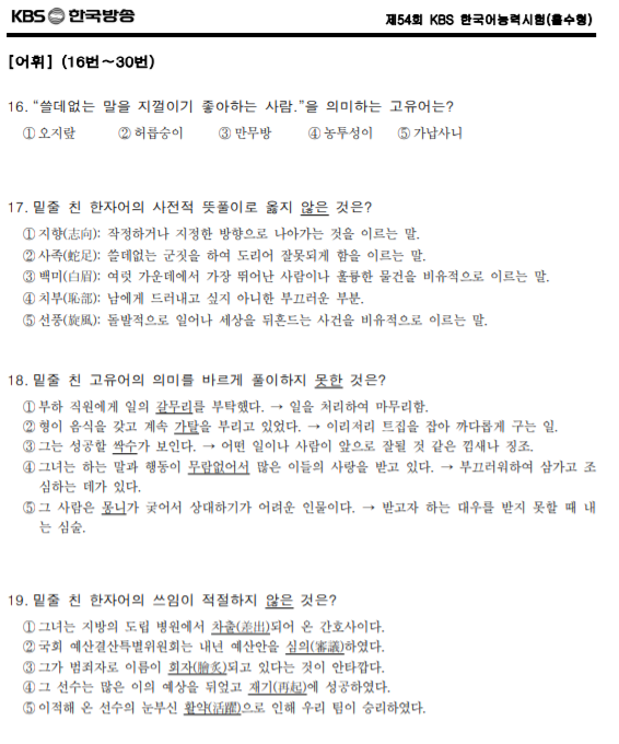 - 실제 KBS 한국어능력시험에서는 이렇게 출제되는 일이 없기 때문에 모의고사에서 당황하지 않으셔도 될 것 같습니다.*