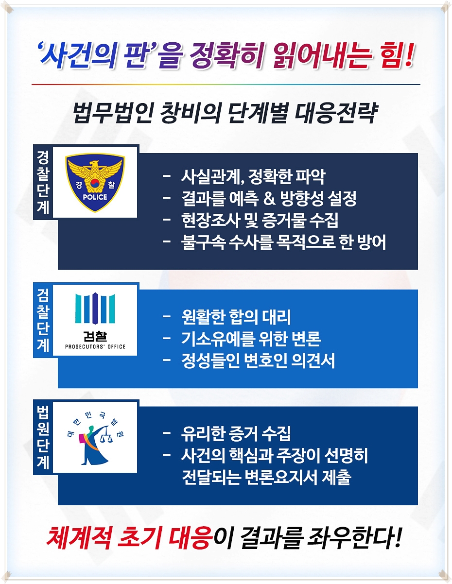 이와 관련하여 어려움을 겪으셨다면 초기에 경험, 노하우, 지식이 풍부한 법조인 분들과 함께 긍정적인 결과를 만들어 보시기 바랍니다.