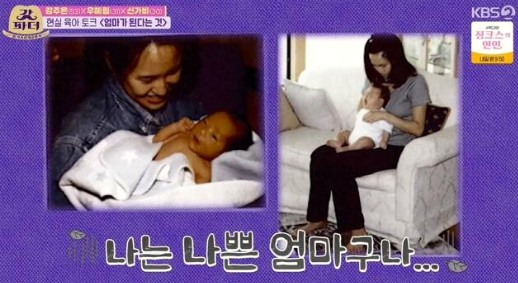 강주은은 “나는 없던 손님이 갑자기 생겼는데 이 손님이 집에 안 가는 기분이었다. 항상 내 옆에 붙어있고 갑작스런 그 순간이 나는 조금 부담스러웠어. 그런데 주변 사람들은 가장 기쁜 때라고 얘기하는데, “왜 나는 그렇게까지 기쁘지 않니?” 그런 마음이 생기면서 “나는 어두운 엄마인 것이다. 나쁜 엄마네. 왜 그런 기분이 들지 않는가. 이렇게 예쁜 목숨이 내 곁에 왔는데라고 솔직하게 말했습니다.