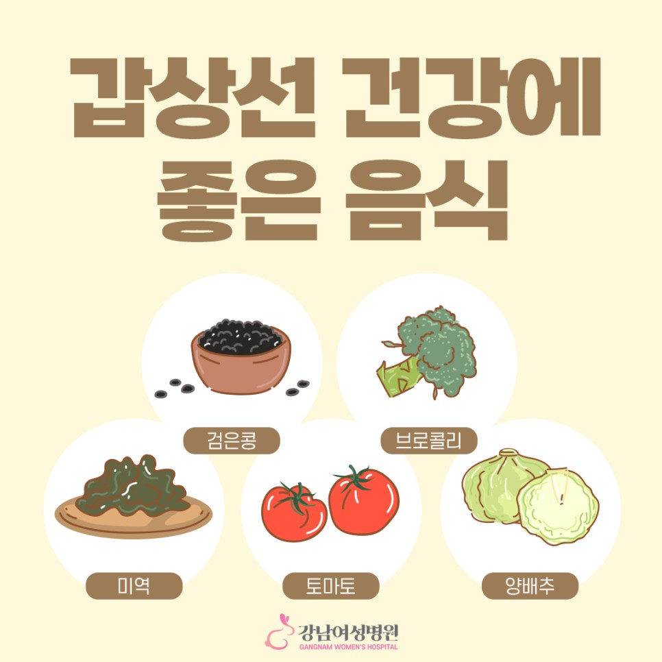 갑상선 건강에 좋은 음식으로는 검은콩, 브로콜리, 미역, 토마토, 양배추 등이 있습니다. 단 이미 갑상선 치료를 받고 있는 중이라면 치료과정에서 피해야 할 음식이 생기는 만큼 담당 의료진과 상의하여 식단을 조절하는 것이 중요합니다.
