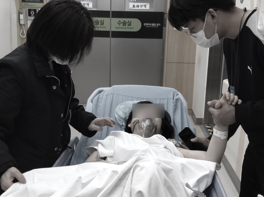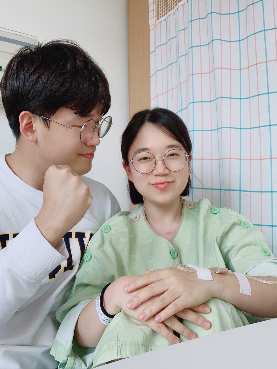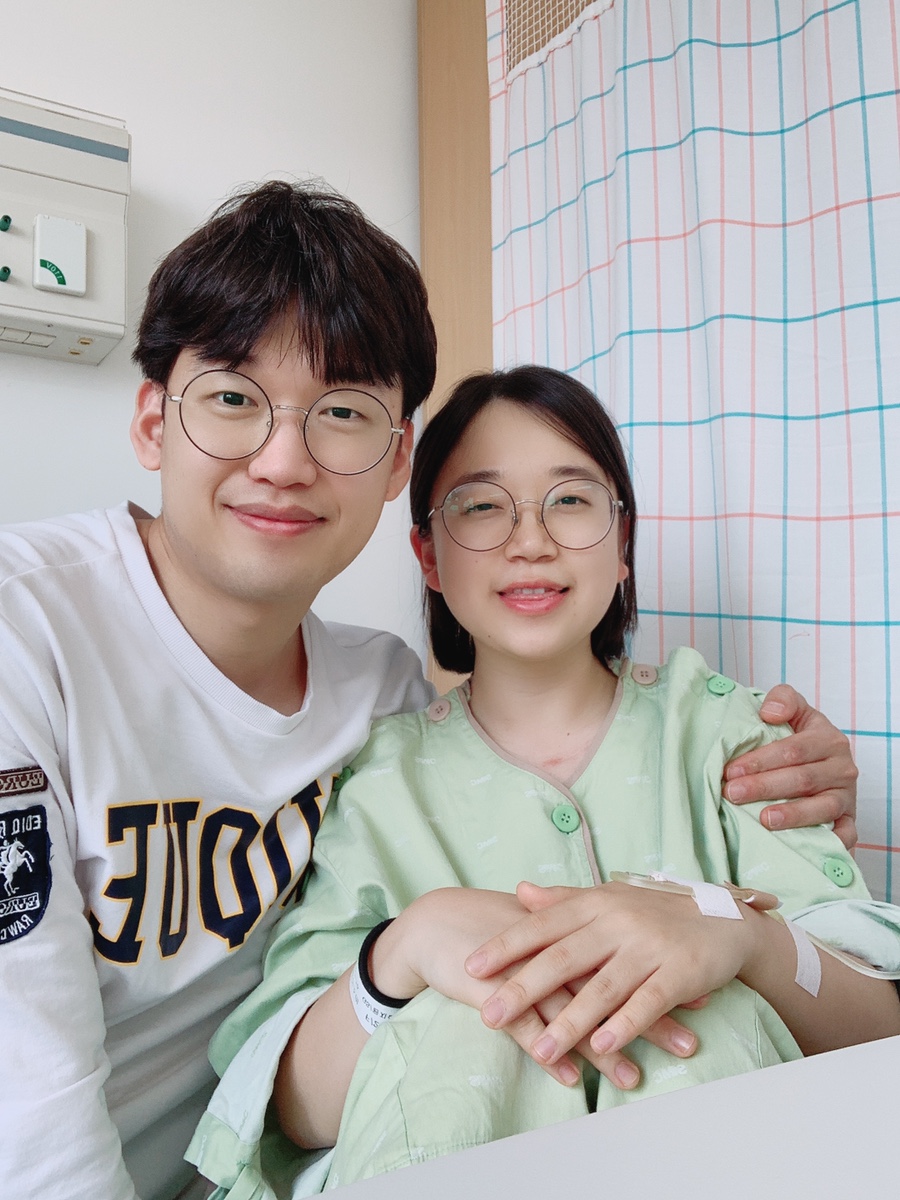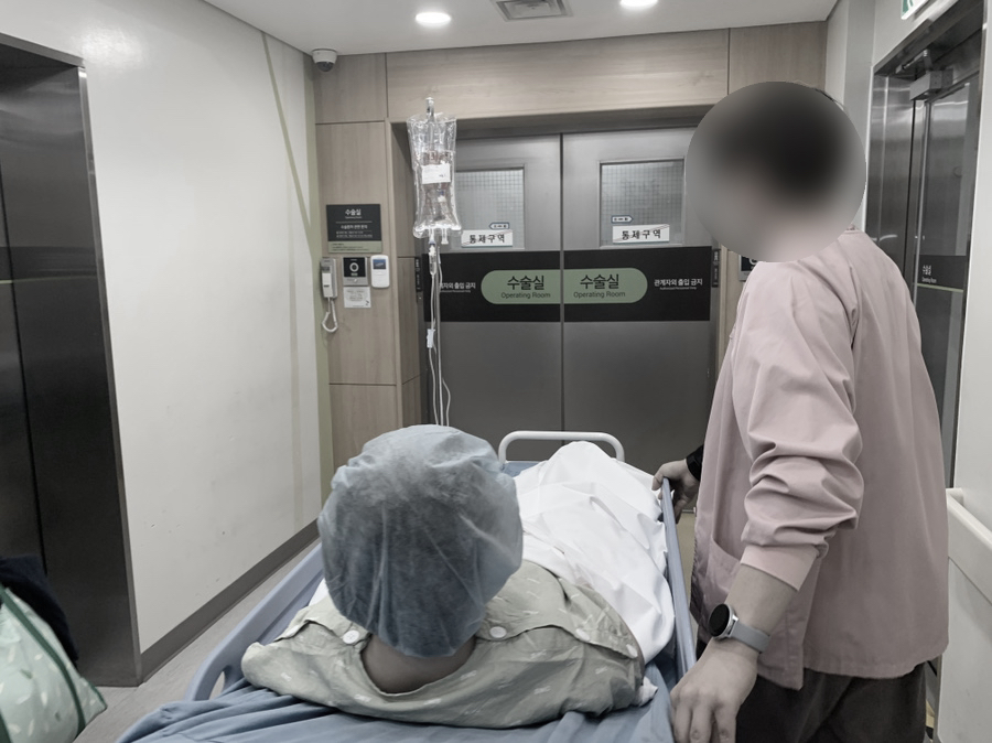 수술 당일 아침 수술이 오후로 정해졌다고 해서 조금 편안한 마음으로 쉬면서 기다렸는데 갑자기 오전 10시 반에 수술이 지금으로 변경됐다며 수술복을 갈아입으라고요.오후에 수술이라서 부모님도 천천히 오셨고 머리를 감으려고 하셨거든..