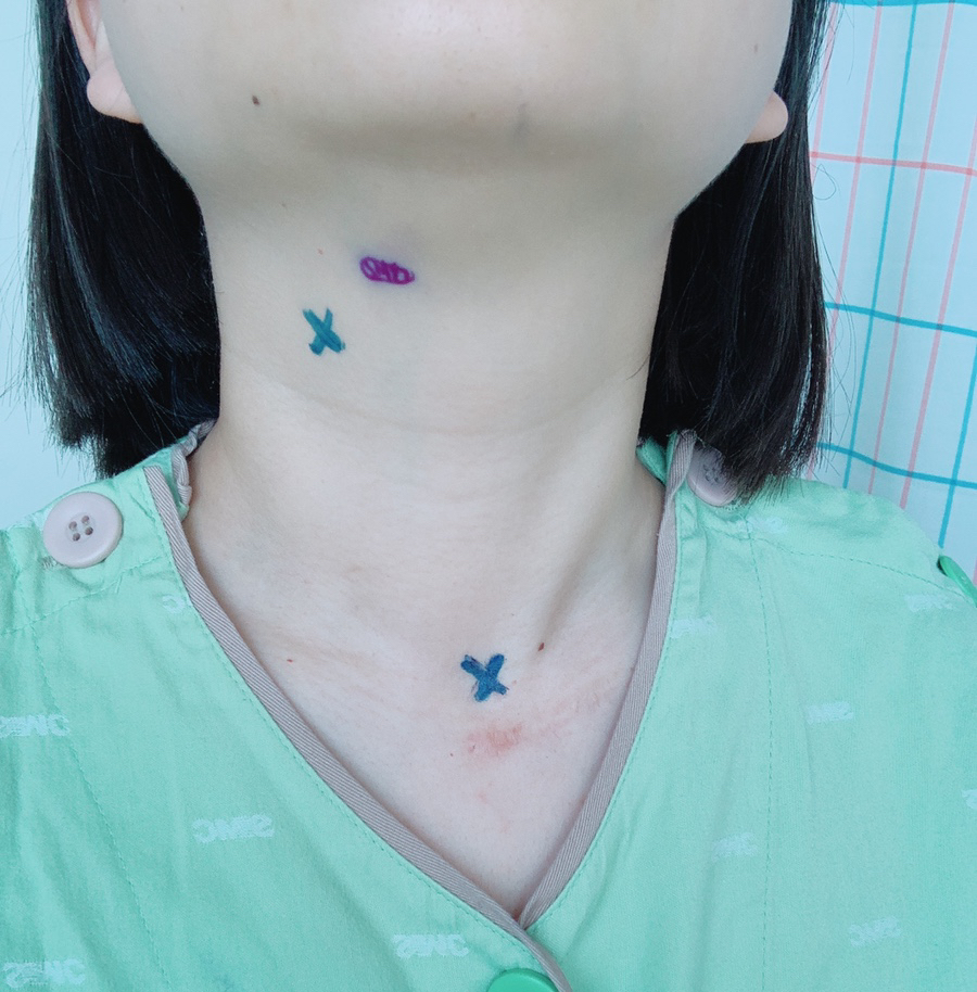 초음파를 가서 마지막 수술 부위를 체크하고 돌아왔다. 이날 초음파실에서 정말 신기한 일이 있었다.예정대로 귀 아래에서 왼쪽 경부 림프절 청소술과 중앙림프절 청소술 갑상선 전 절제술을 시행한다고 한다.