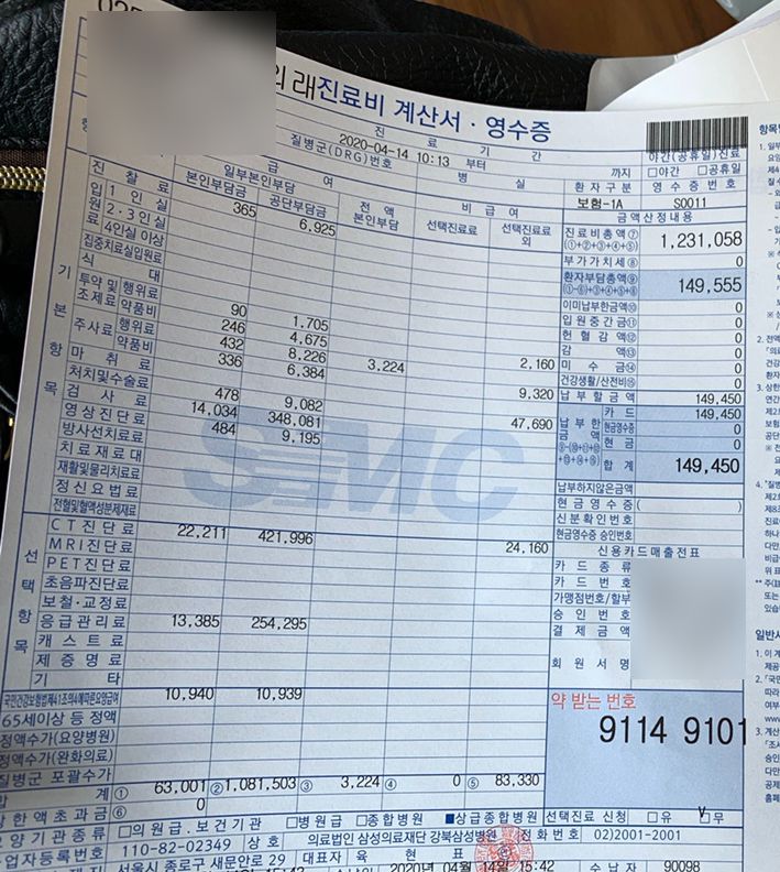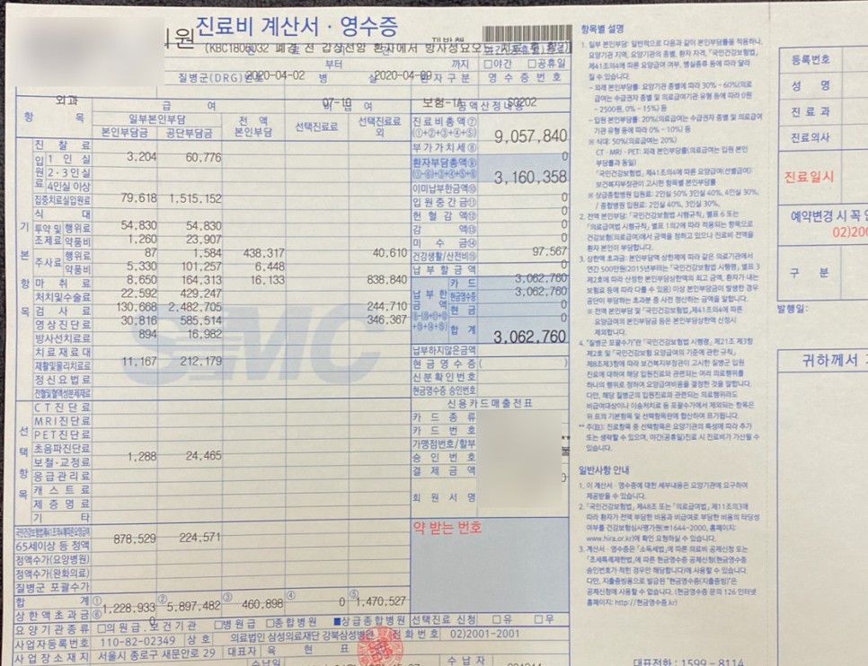 수술 때도 900만원이 나왔지만 본인 부담은 300. 다행이다.