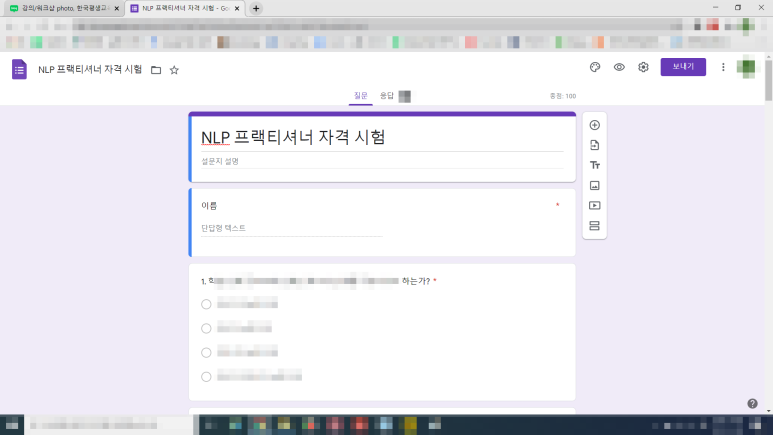 15교시는 NLP프랙티셔너 자격시험을 실시합니다. 구글 설문지를 활용하여 온라인 시험을 보고 결과를 교육생에게 통지합니다.