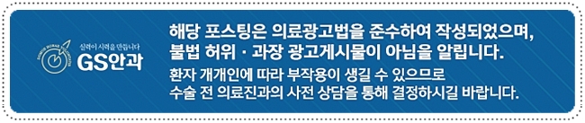 큰 통증 없이 불편한 증상만 동반한다고 방치할 것이 아니라 많은 경험과 실력을 갖춘 의료진의 시력을 되찾아 주시기 바랍니다.