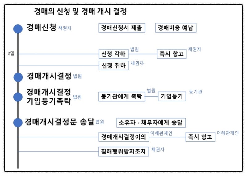 기본적으로 경매 사건 취하 신청은 채권자가 취소 신청은 채무자가 할 것으로 본다.[경매 사건 취하]1. 취하 신청 자격:경매 신청인 취하 강제 집행을 위한 “호소”을 제기한 자(경매 신청 채권자)만 할 수 있어 채무자나 소유자(물상 보증인 등)는 경매 신청을 취하할 수 없다.한편 경매 신청인의 권리의 승계가 있는 경우(1)강제 경매의 경우 승계 집행문을 부여 받고 집행 재판소에 제출 후에는 승계인이 취소 가능(2)임의 경매의 경우는 담보 물권이 대위 변제로 이전될 경우 대위 변제자가 취소 신청 가능하다.2. 취소 시기 및 요건으로는(1)매수 신고가 있기 전-매각 기일에 인수 신고가 있기 전까지 임의대로 취소 신청이 가능하고- 다른 채권자의 동의 필요 없다.(2)매수 신고를 받은 뒤-최고가 매수 신고인 또는 차순위 매수 신고인의 동의를 얻어야 효력이 없다(93조 2항)기타 이해 관계인의 동의 필요도 없다(3)이중 경매 개시 결정이 있었을 때-선행 사건의 압류 채권자가 신청을 취하하더라도 후행 사건은 절차가 계속된다(87조 2항)(4)매수인이 대금을 납부한 뒤에는 취하가 허용되지 않는다.3. 취소시에 필요 서류 1)입찰기 전-경매 취하서 2통(경매 신청시에 날인과 같은 도장을 사용)-경매 신청 채권자 인감 증명서 1통-채무 상환증 또는 채무 상환을 유예한 채권자의 승낙서-위임장(채무자 소유자가 채권자의 위임을 받고”취소”처리시)2)입찰일에 최고가 매수 신고인이 결정된 후-상기 서류+최고가 매수 신고인의 동의서(차순위 매수 신고인이 있는 경우는 동의서도 필요)[경매 사건 취소]경매 신청 채권자에게 채무자가 단독인 경우 취소를 요구하는 절차에는 최고가 매수 신고인(낙찰자, 차순위 매수 신고인)의 동의는 필요 없이 강제 경매와 임의 경매에 절차상의 차이가 있다.(1)강제 경매 기본적으로 이해 관계인이 경매 신청 요건의 미비, 경매 개시 요건의 미비 등 절차상의 하자의 이유로 경매 개시 결정에 이의를 제기할 수 있고, 채무자가 청구 이의를 제기하고 본안 재판소에서 집행 정지 결정을 받은 뒤 본안에서 승소 판결 원본을 취소 서류로 제출한 경우 매수인의 동의 없이 취소할 수 있다.채무자가 있다. 소송을 제기한 법원(수소 법원)”강제 집행 정지 결정”을 받아 경매 법원(집행 재판소)에 그 결정 문을 제출하고 경매 절차를 정지시킨 후(이 때 법원은 채무자(원고)에 담보 제공을 조건으로 집행 정지 결정을 하기도 한다.)”청구에 관한 이의 소송”에서 승소 판결을 받아 그 확정 판결문을 경매 법원에 제출하면 법원 직권으로 등기소에 “경매 개시 결정”기입 등기의 말소를 촉탁하는 경매 기입 등기가 말소되는 것으로 경매는 취소된다. 이때 청구 이의 소송 제기에 의해서 경매 절차가 당연히 정지되는 것은 아니므로 청구 이의 소송 재판부에 소정의 보증금을 제공하고, 별도의 강제 집행 정지 결정을 받고 경매권에 제출해야 경매 절차가 중단된다. 이런 경우 절차의 흐름은 다음과 같다.① 채무자의 변제 공탁 → ② 청구 이의 소송 제기+강제 집행 정지 신청 → ③ 강제 집행 정지 결정 → ④ 강제 집행 정지 결정 문은 경매 관계 제출 → ⑤ 청구 이의 소송 승소 후 경매 관계가 승소 확정 판결문을 첨부하고 경매 절차 취소 신청 → ⑥ 경매 관계 경매 절차 취소 결정 → ⑦ 경매 계장의 경매 개시 결정 기입 등기 말소 촉탁 → ⑦ 등기부 정리%주의 사항 청구 이의를 제기한 법원과 경매 법원은 법원이 다른 채무의 변제(또는 공탁)등 실체적 이유에 대한 이의 결정 못하고 있다.낙찰자의 잔금 납부일 전까지 “집행 정지 결정 문었다”를 제출해야 한다.(2)임의 경매 다음의 서류가 법원에 제출되면 경매가 정지된 취소가 가능하다.채권자가 경매 신청의 기초가 된 담보 물권( 근저당권)을 말소하고, 등기 사항 증명서를 취소 서류로 제출한 경우 채무자가 채권자를 상대로 채무 부존재 확인 소송 또는 저당권 말소 청구 소송을 통해서 경매 절차를 일시 정지시키고 확정 판결 후에 원본을 집행 취소 서류로 제출할 경우 상기 승소 확정 판결을 원인으로 근저당권을 말소하고 말소된 등기부 등본을 취소 서류로 제출 채무자의 임의 경매 개시 결정에 대한 이의로 경매 절차 취소 결정이 확정된 경우**1)임의 경매 실행 채권 즉 담보권( 근저당권( 근저당권 등록, 담보권 담보권 정지 신청서”를 경매 법원에 제출한 뒤”경매 절차 정지 결정”을 받아 그 결정 문을 경매 법원에 제출한다.”경매 절차 정지 결정”을 수령한 경매 법원은 채권자와 채무자를 심문한 뒤 그 결과에 의한 경매를 취소”경매 개신 결정”기입 등기의 말소를 등기소에 촉탁함으로써 모든 절차가 마무리된다.2)피 담보 채권의 변제 수령을 경매 신청 채권자가 거절하는 경우 또는 채무를 변제했지만, 그 경매 실행 담보권이 말소되지 않을 경우에는 이미 발생한 경매 실행 비용(경매 예납금 등)및 채권액(원금과 이자 등)을 법원 공탁원에게 변제 공탁하고 청구 이의의 호소에 준하는 “채무 이의의 소송”을 제기하고”경매 절차 집행 정지”의 신청을 하고 그 결정 문을 반드시 경매 법원에 제출해야 한다.그 뒤”승소 판결”을 