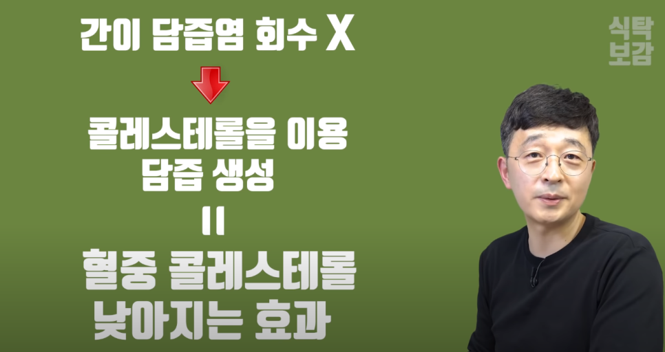 담즙은 콜레스테롤을 원료로 하는 것이기 때문에 재활용을 못하게 하면 간은 새로운 콜레스테롤을 만들어서 새롭게 담즙을 만들어야 하거든요.