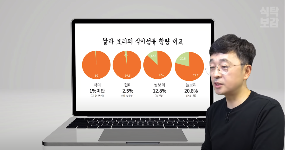 백미 1% 미만 현미 2.5% 쌀보리 12.8% 늘보리 20.8% 늘보리가 갑입니다.콜레스테롤이 높으면 늘 보리의 압맥으로 지은 밥.