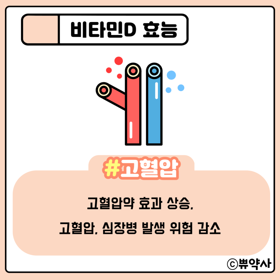 왜냐하면 먼저 비타민 d는 혈관 탄력성을 좋게 하고 혈관 확장 인자의 분비를 도와 혈압 상승을 억제하기 때문입니다.