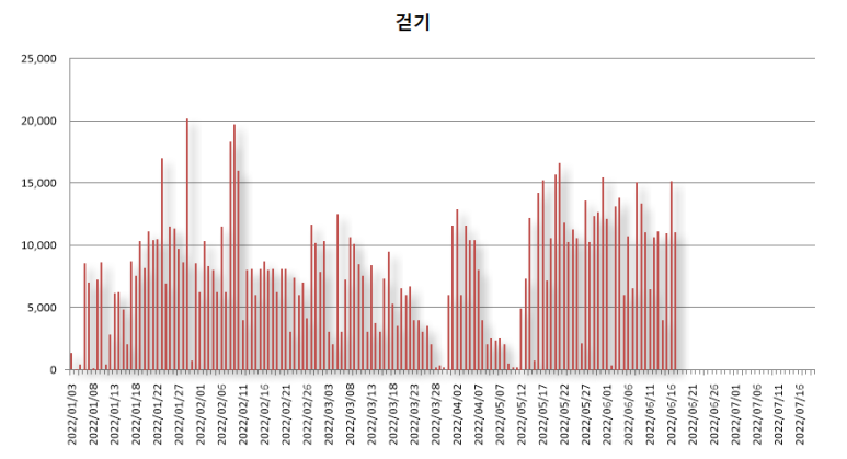 <하루 10,000보 걷기 횟수가 늘어난 걷기 기록>
