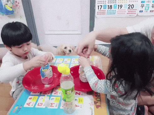 진오니 화산폭발놀이 진이는 어렸을때도 몇번 해봐서 신기하진 않았지만 신났던 도깨비는 처음이라 그냥 신기하다고 계속 우와~~만 얘기했나봐귀여워!!!