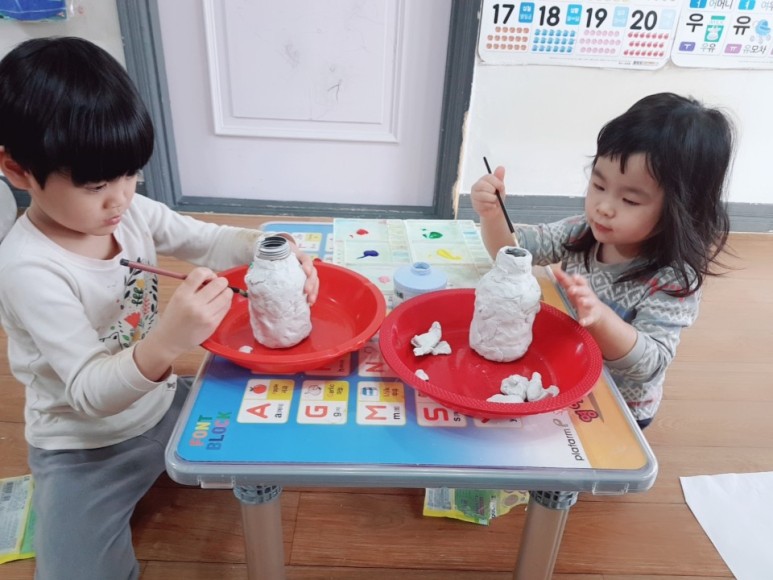 그림물감 바르는 건 그냥 가도 되지만 조금 더 오래 아이들과 시간을 보내고 싶다면 강력추천!!! 어차피 이거 금방 끝내고 또 다른 무언가를 해야되니까… 아이들은 그림물감 바를 때 찰흙 바를 때보다 집중하던 아이들이 이렇게 잘 따라와줘서 너무 고마울 뿐이고