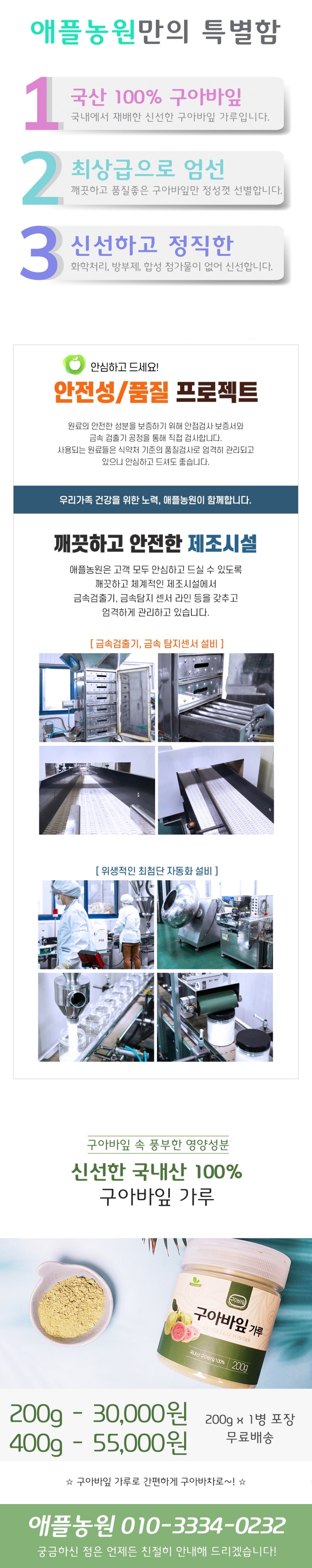 간편한 가루 타입으로 제대로 드셔보세요.^^아무것도 넣지 않은 단지 원물만 잘게 갈은 구아바 잎 파우더를 파는 곳 애플 농원이었습니다.