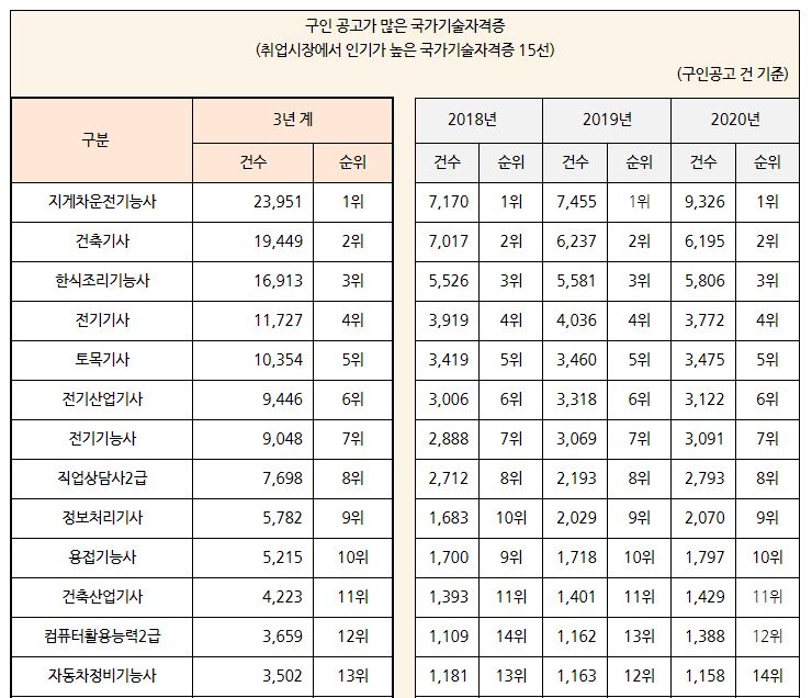 그런 분들은 구인광고가 많은 국가 기술 자격증 종류를 준비하는 것을 추천합니다.