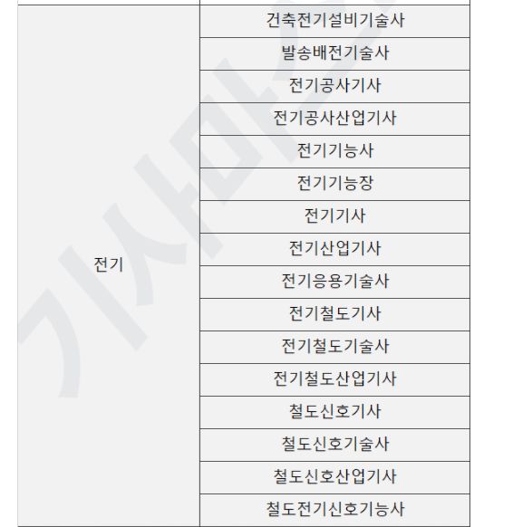 발송배전기술사, 전기철도산업기사 등 낯선 자격증까지 정말 많이 있습니다.