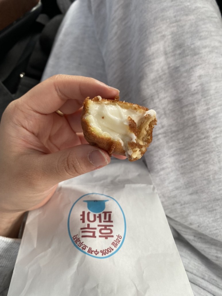 엄마랑 동생 데리러 가는 길에 크림치즈 호두만두를 샀는데 너무 맛있어.