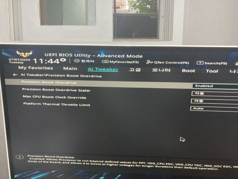같은 AiTweaker 메뉴 탭에서 Precision Boost Overdrive를 눌러 진입해 줍니다.