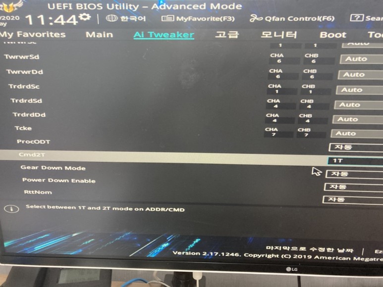 Cmd2T라고 쓰여져 있는 값을 Cmd2T > 1T로 변경해 주세요. 그리고 나서 다시 메인 화면으로 이동합니다.