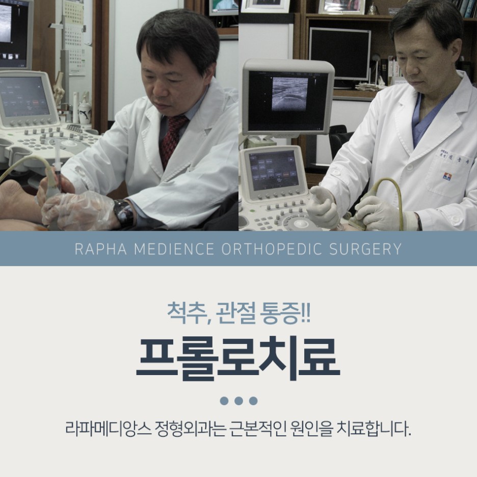 병변 주위를 초음파로 직접 보고 치료하는 방법인데 의료진의 해부학적 지식, 치료에 대한 경험, 노하우 등이 매우 중요하기 때문입니다. 또한 질환의 급성기에는 프롤로 치료 후 일시적인 염증 악화로 인해 통증이 더욱 심해질 수 있습니다. 초음파 영상을 통해 직접 확인하면서 진단을 내리고 동시에 치료가 이루어지기 때문에 의료진의 숙련도와 노하우가 매우 중요합니다.