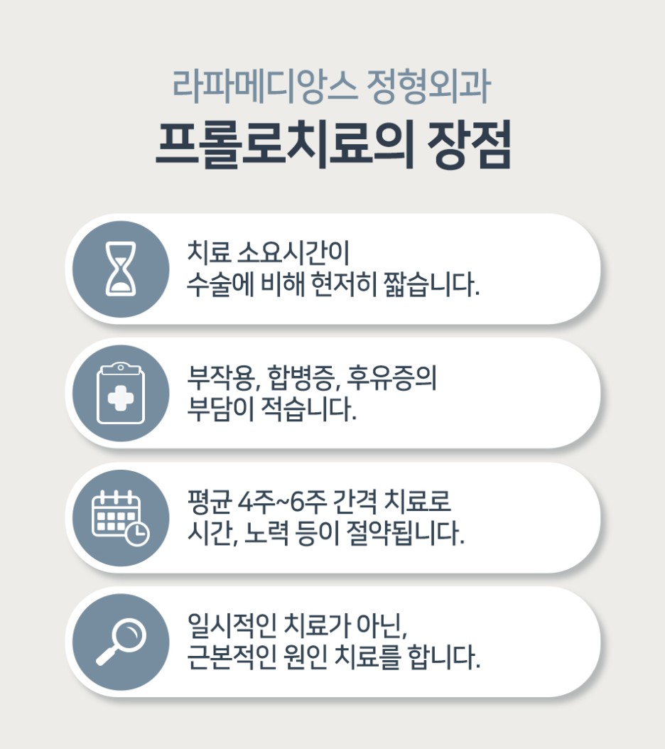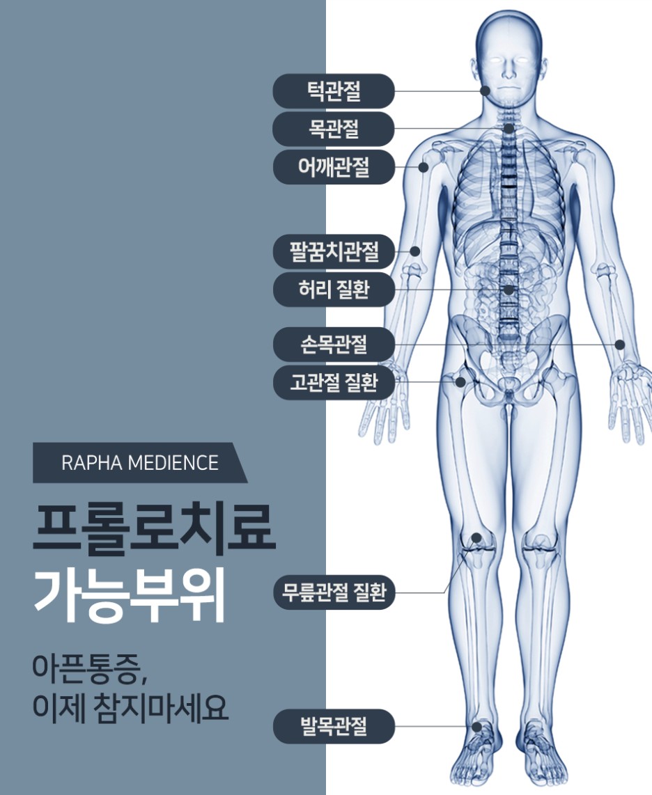 인체에 무해한 성분을 병변에 주입하여 염증 부위를 자극하여 세포증식을 유도하고 손상된 부위의 강화 및 재생을 돕습니다.고령부터 만성질환자, 기저질환자에게도 적용 가능한 방법이며 현재까지 부작용에 대한 사례 보고 등을 적고 비교적 편안하게 받을 수 있습니다.