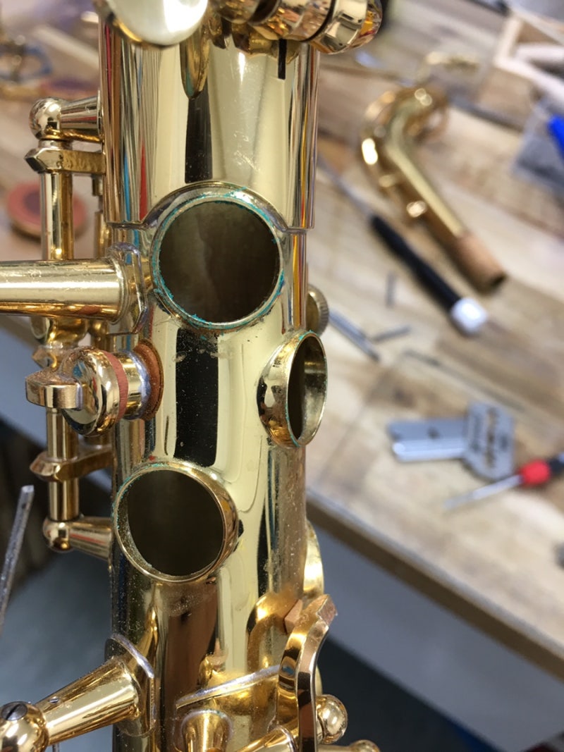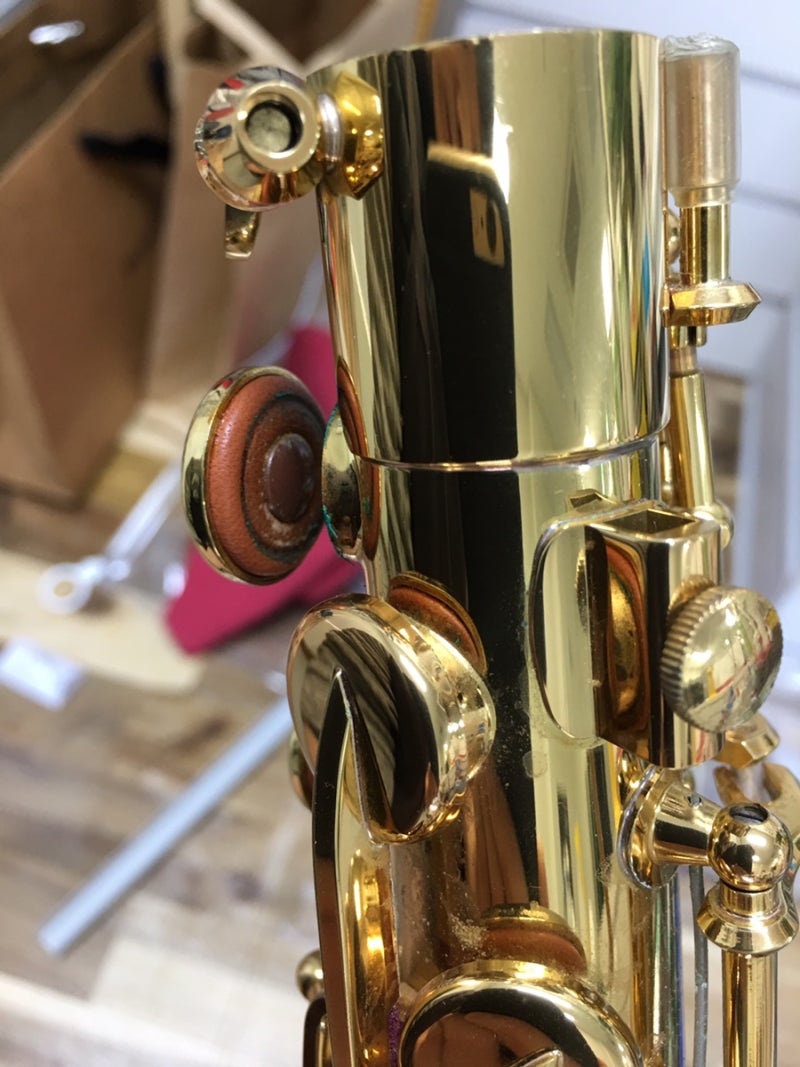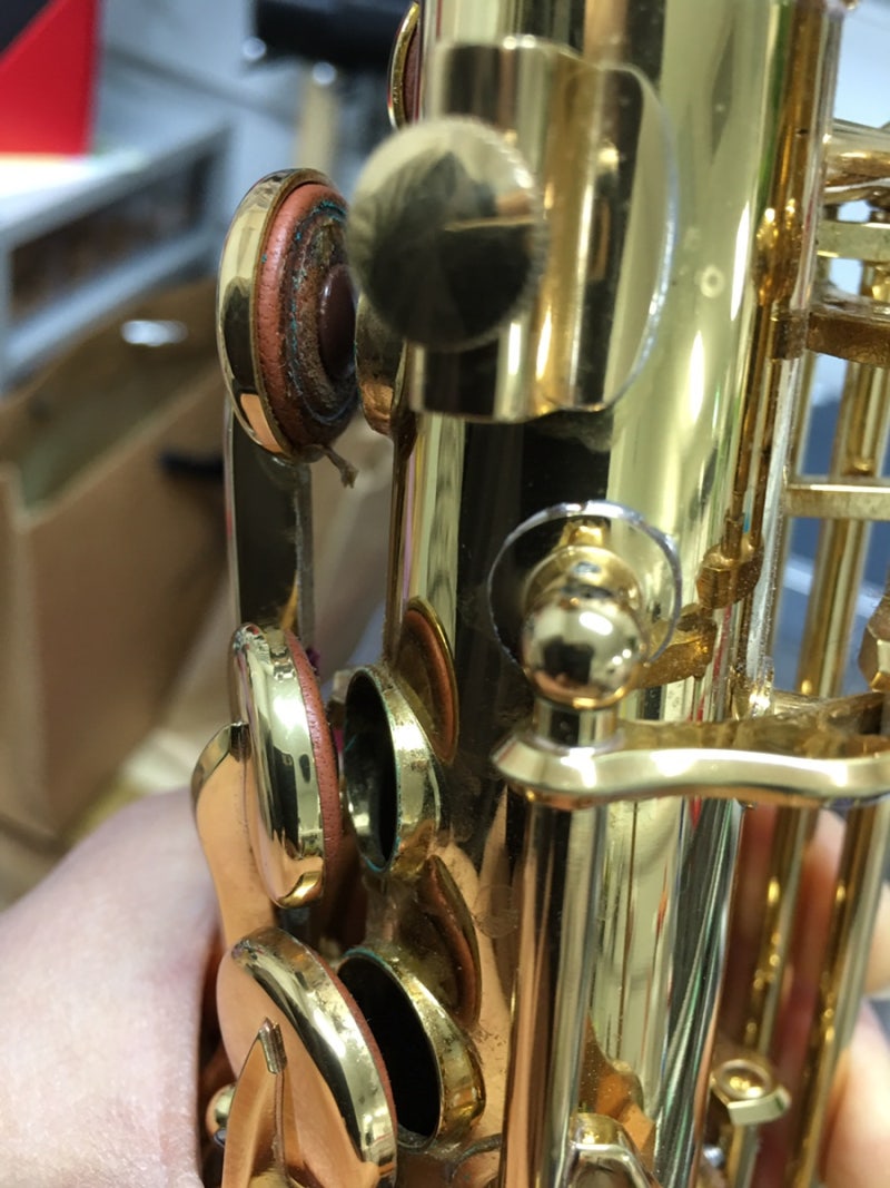 가까이서 보니까 얼룩이 많네요 세척도 필요할 것 같죠?그럼 깨끗이 닦아볼까요?예뻐진 색소폰! 여기저기 있던 얼룩이 깨끗이 지워졌네요.앞/뒤로 확대해보니 많이 달라졌어요.이렇게 옆에서 보시면 교환한 모습을 보실 수 있어요풀 수리부터 세척까지 마친 색소폰!근영악기로 오셔서 맡겨주시면 새 악기처럼 수리해드리겠습니다.근영악기연락처(TEL.010)-6278-000002)-744-8676FAX.050)-4059-6929 카카오톡 상담가능시간 평일 월-토 오전 11:30 – 오후 18:00 일요일 공휴일 휴무입니다.카카오톡 https://https://kymusic.co.kr/ 홈페이지 open.kakao.com/me/kymusic