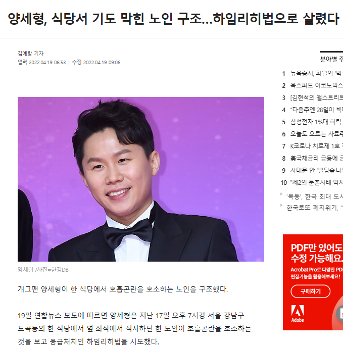 양세형 씨가 시행한 하임리히 법 관련은 아니고