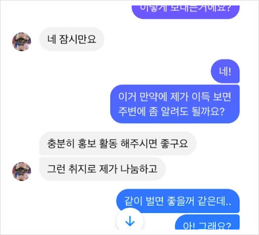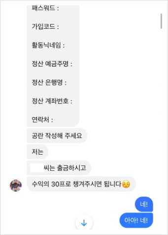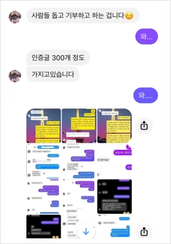 그리고 이렇게 이미지를 만든 후 김재영은 ‘스빈 나눔 이벤트 인증문 작성 시 500 지급’이라는 메시지를 수천 명에게 보냈습니다.
