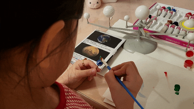 너무 집중해서 잘 발라주고 물감, 붓까지 다 준비되어 있기 때문에 과학기구 키트가 있으면 아무것도 필요없습니다.물통 정도일까?간편하다는 것도 큰 강점이 될 것 같아요!