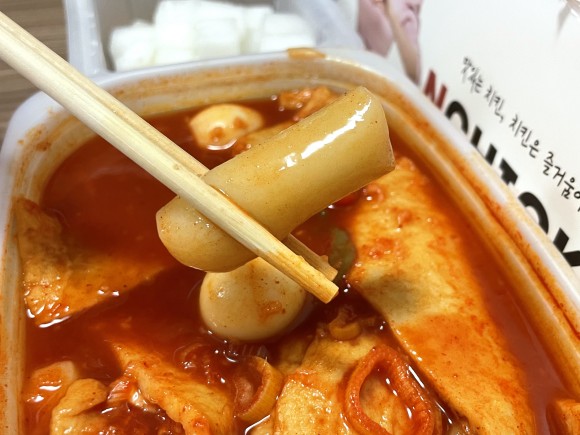 동시에 치킨과 떡볶이를 같이 먹는 걸 좋아하는 저희가 주문한 엔틱스 치킨만의 떡 떡볶이는 밀가루 떡이 듬뿍 들어있어서 그런지 중독성이 대단하네요