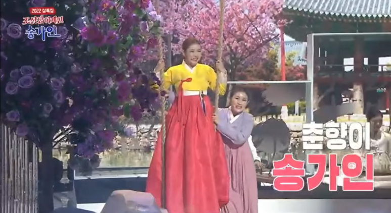액, 액을 잡아 복을 가져오는 022 임인년, 검은 호랑이 해의 좋은 기운을 품은 범띠 송가인이 여러분을 찾아옵니다.민족 대명절 설날을 맞아 호랑이의 건강한 새해를 맞아 한국을 강타한 트로트 여신 송가인이 준비한 특별 국악 콘서트 옴니버스로 다채롭게 구성한 판소리 수궁가, 춘향가, 심청가 히트곡부터 전통을 소재로 한 창작곡까지… 전통음악에 대한 송가인의 깊은 애정이 담긴 명절 선물세트 같은 풍성한 무대를 즐겨보세요!