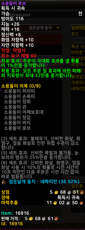 화염계의 주문 효과를 높여주는 아이템으로