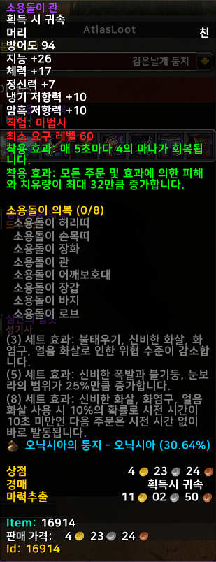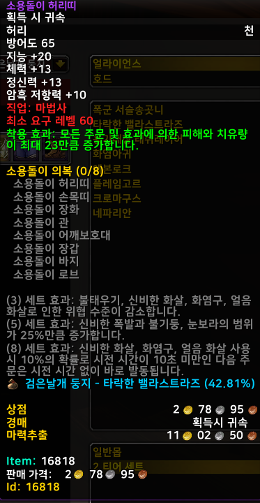 [와우클래식] 6페이즈 화산심장부, 검은날개집, 강운, 앵클러즈 사원, 낙슬래머즈까지 마법사(법사) 아이템 정리 및 소개
