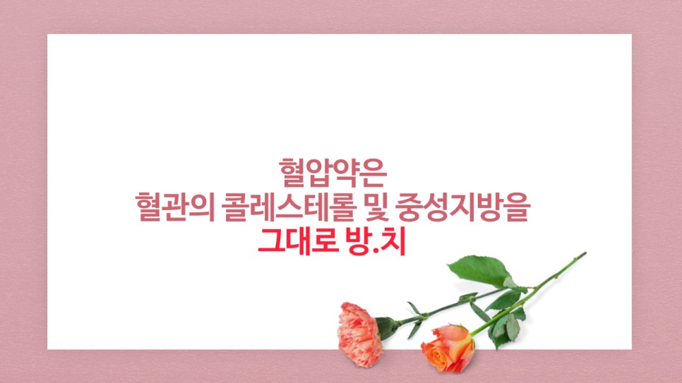 혈관에 있는 기름만 비우고 돌도록 하면 되는데 혈압약은 콜레스테롤의 중성지방은 그대로 두고 혈관만 일시적으로 넓히는 역할만 하기 때문에 그에 따른 일시적 처방만 있을 뿐 근본적인 문제해결을 할 수 없습니다.그렇기 때문에 장기적으로 복용하는 것은 매우 위험하다는 이야기도 나오고 있습니다.