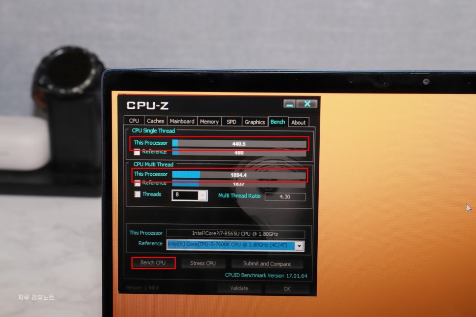 마지막으로 CPU-Z를 통해 객관적인 성능을 측정하는 방법을 공유한다. [Bench] 탭을 이용하면 된다. 시작 버튼을 클릭하면 멀티/싱글 코어 테스트를 수행한다. 대표적인 벤치 프로그램인 씨네벤치 R20 대신 사용해도 무방하다. 이를 어디서 활용할 수 있느냐 하면 여러분이 보유한 시스템에 탑재된 프로세서가 제 성능을 발휘하고 있는지 다른 사람이 측정한 값과 비교를 통해 확인할 수 있다.