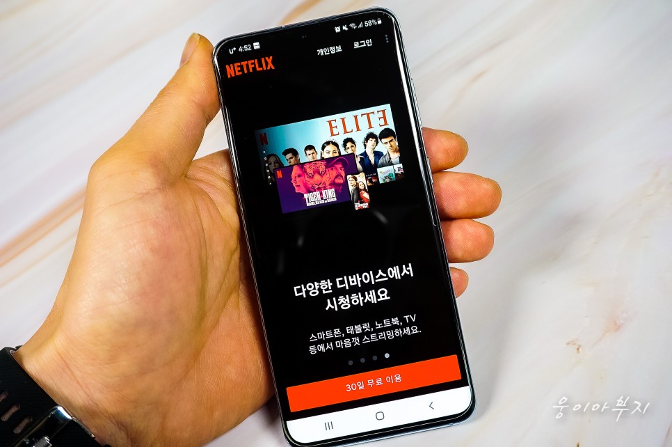 스마트폰뿐만 아니라 태블릿, 컴퓨터, 노트북, TV의 다양한 디바이스로 시청할 수 있어 편리합니다. 그럼 아래 ’30일 무료 이용’ 빨간 Bar를 눌러 무료 이용 신청을 해보겠습니다.