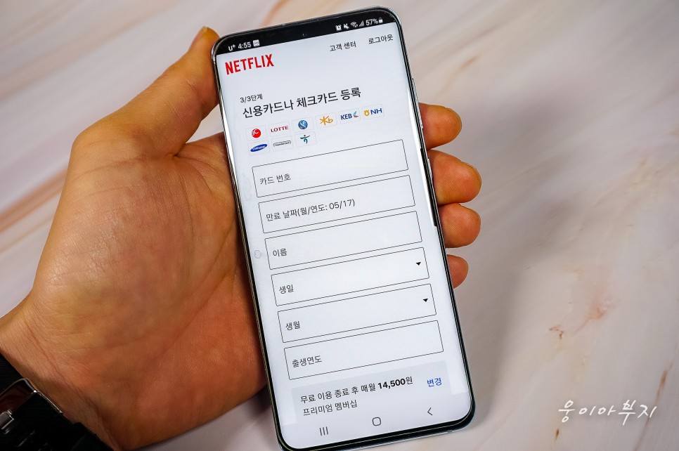 신용카드나 체크카드 정보를 입력합니다. 조심해야 할 것은 저는 실제 생일과 주민번호가 다릅니다. 반드시 카드 신청 시 작성한, 즉 주민번호 생일을 입력해야 합니다. 그렇지 않으면 오류가 발생합니다!