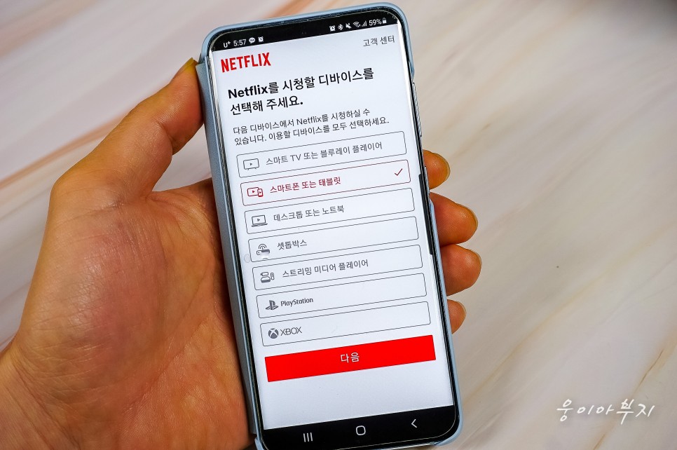 넷플릭스를 시청할 디바이스를 선택해 줍니다. 중복 선택할 수 있습니다. 저는 스마트폰과 컴퓨터를 선택했습니다.