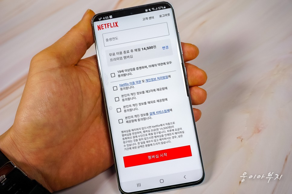카드 정보를 모두 입력한 후 스크롤을 내리고 약관을 읽고 동의하면 체크한 후 ‘멤버십 시작’을 누르시면 됩니다.