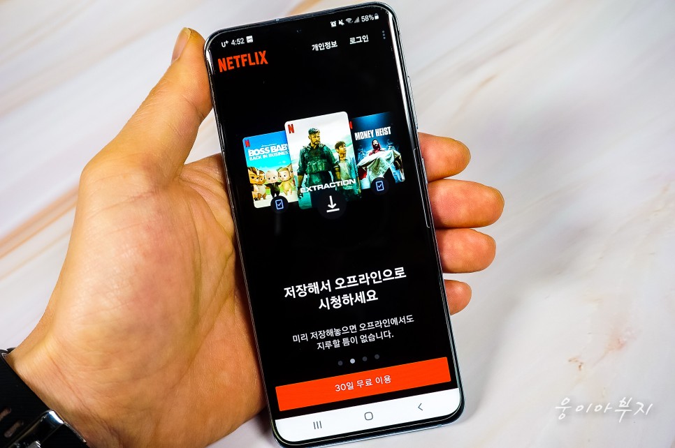 사실 외부에서 스트리밍 서비스를 이용하면 데이터 부담이 되잖아요. 무제한 요금제를 사용하시는 분은 문제가 없다고 생각합니다만, 대부분 한정된 데이터를 사용한다고 생각하기 때문입니다. 그래서 보고 싶은 콘텐츠를 미리 저장한 후 언제든지 인터넷 접속 없이 즐길 수 있습니다. 이런 편의성은 정말 좋네요!
