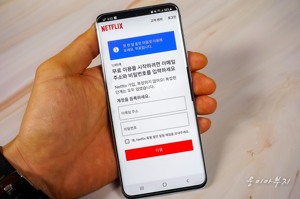 넷플릭스 무료체험을 하려면 먼저 계정을 만들어야 합니다. 아래 다음을 눌러주세요.