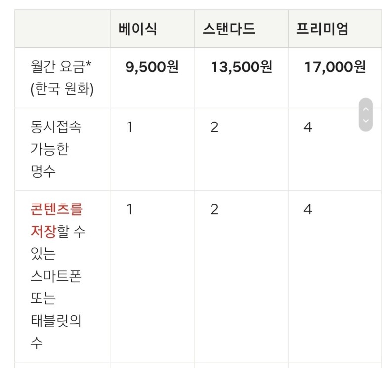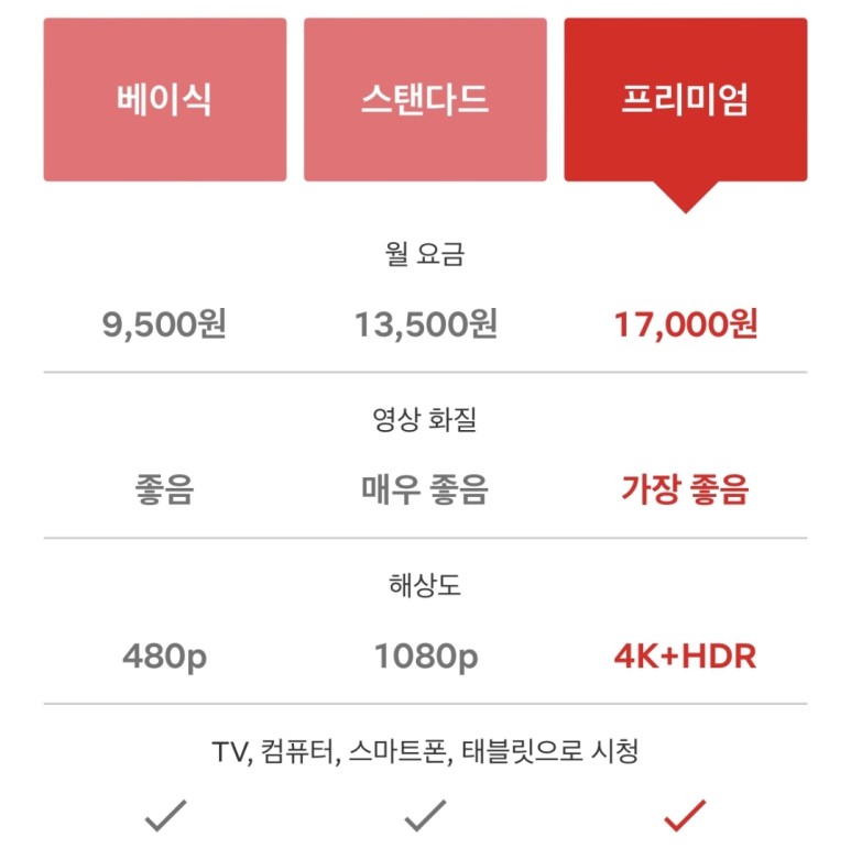 넷플릭스 프리미엄, 스탠다드 멤버십 요금인상(17,000원)