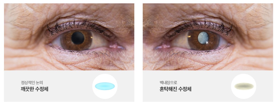 백내장이란? 누네 빛 속과 눈은 카메라의 구조나 원리와 거의 같고, 그 중에서도 눈 속의 수정체는 카메라 렌즈에 해당합니다.카메라의 렌즈가 흐리면 흐릿해지듯이 수정체가 탁해지면, 눈에 들어간 빛이 망막에 상처가 나기 전에 어른거리게 되어, 사물이 번져 보이거나 흐리거나 하는 등의 시력 저하 현상이 나타납니다.