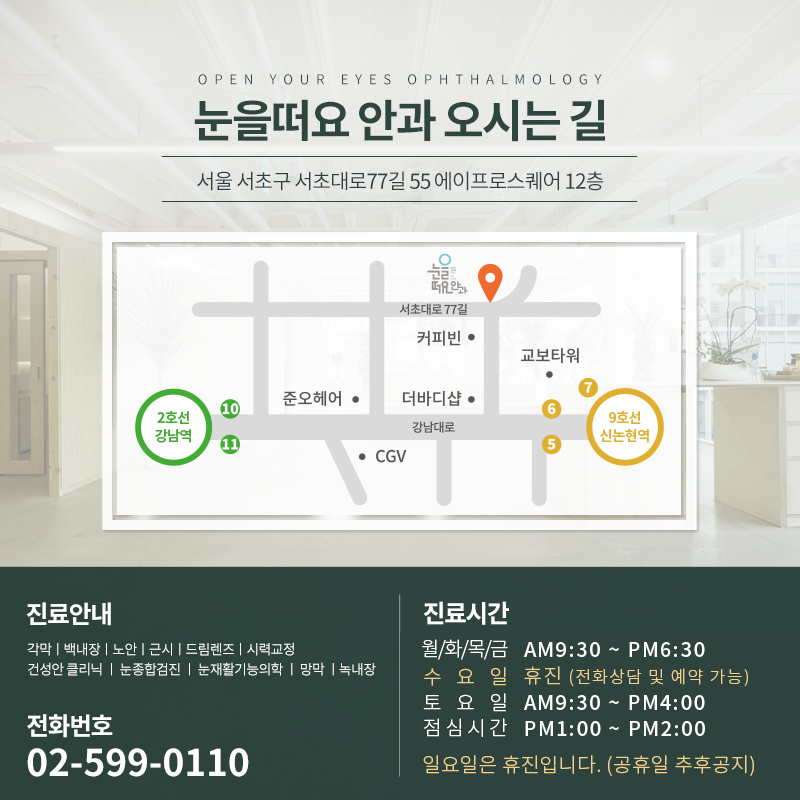 서울특별시 서초구 서초대로 77길 55 에이프로스퀘어 12층 깨어나는 안과