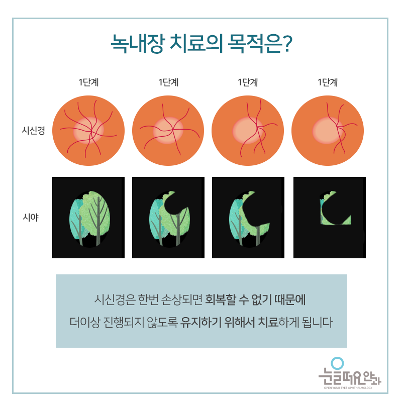 그 방법 중 하나로는 정상 범위의 안압을 유지하고 시신경을 보호하는 약물 점안이 주를 이루는데, 때에 따라 레이저를 시행하기도 하며, 만약 급성인 경우에는 안압을 낮추는 안약을 점안하고 강하제를 복용하는 등 신속한 처치가 필수적입니다. 그러나 이러한 노력으로도 진행을 늦출 수 없다면 수술적인 방법을 고려할 수 있습니다. 섬유주 절제술 및 밸브 삽입술로 구분되어 안구의 압력이 하강하는 효과가 입증되어 오늘날에도 널리 행해지고 있는 교과서적인 방법입니다.