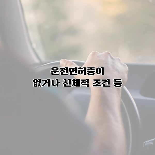 지금은 운전면허증이 없으면 운전할 수 없지만 차량 운전이 절실히 필요해도 운전면허증이 없거나 신체적 조건 등으로 인해 운전할 수 없는 상황이 있습니다.