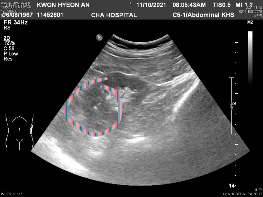 차병원에서 찍은 CT, 초음파, 대장, 위카메라 CD를 보여드리며 담석증 소견과 신장 10cm 정도의 물집을 제거하도록 원장.