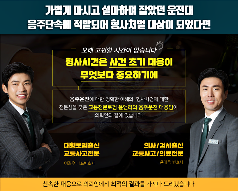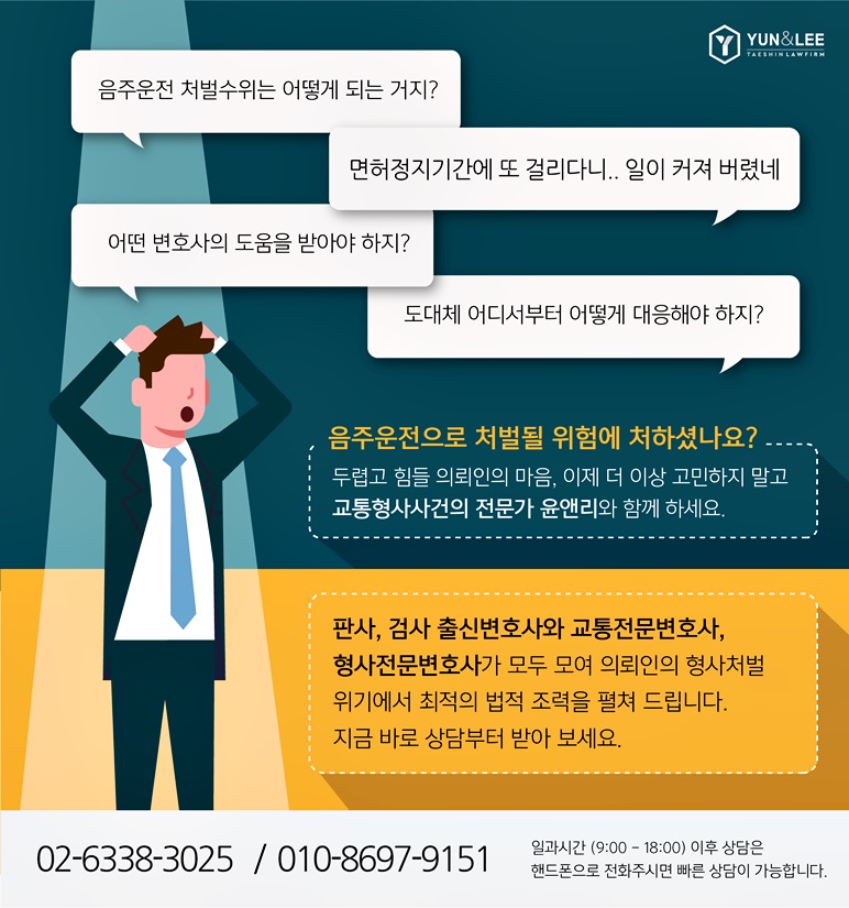 앞서 말했듯이 법원의 기준이 매우 엄격하게 규정돼 있기 때문에 초범이라 하더라도 방심은 금물이며, 자신의 권익을 보호해줄 유능한 음주운전 변호사를 선임해 함께 대응해야 한다고 했습니다.