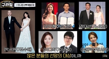 MC 김구라는 아나운서들이 남자로 치면 문무를 갖추고 여자로 치면 공부도 잘하고 미모도 뛰어나 선망의 대상 아니냐.며느리가 되고 싶어 하는 분들도 많다고 말했다.